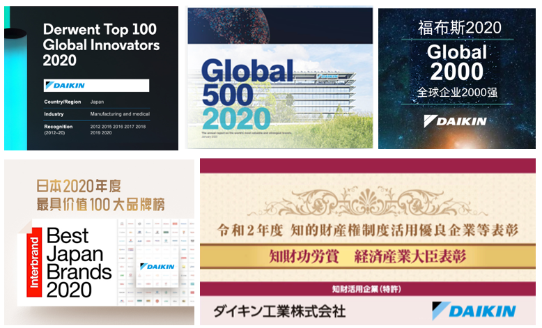大金不仅得到了市场的肯定,也拥有众多行业权威认可,曾荣获“2020年全球最具价值500强”、“2020年全球百强创新企业”、“2020年中国房地产企业500强首选供应商”、“2019年社会责任最具影响力品牌”等权威奖项,从品牌影响力、商业价值、创新力、节能性、社会担当等均获得来自行业的长期认可,这些荣誉见证着大金的成长,也督促着大金为全人类缔造更舒适的空气环境而不懈努力。