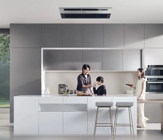厨房作为开放空间,已成为兼顾厨房+餐厅+社交活动岛台,打造家庭生活新中心,大金中央空气系统推出大容量厨房专用机,不仅提供夏冬两季舒适空气体验,宽广气流覆盖大空间,横纵百叶切割气流更均匀,同时搭载大金魔力三管技术,自动除湿,有效防霉,Dryshock自清洁技术*1,冲刷翅片灰尘,使用更安心。